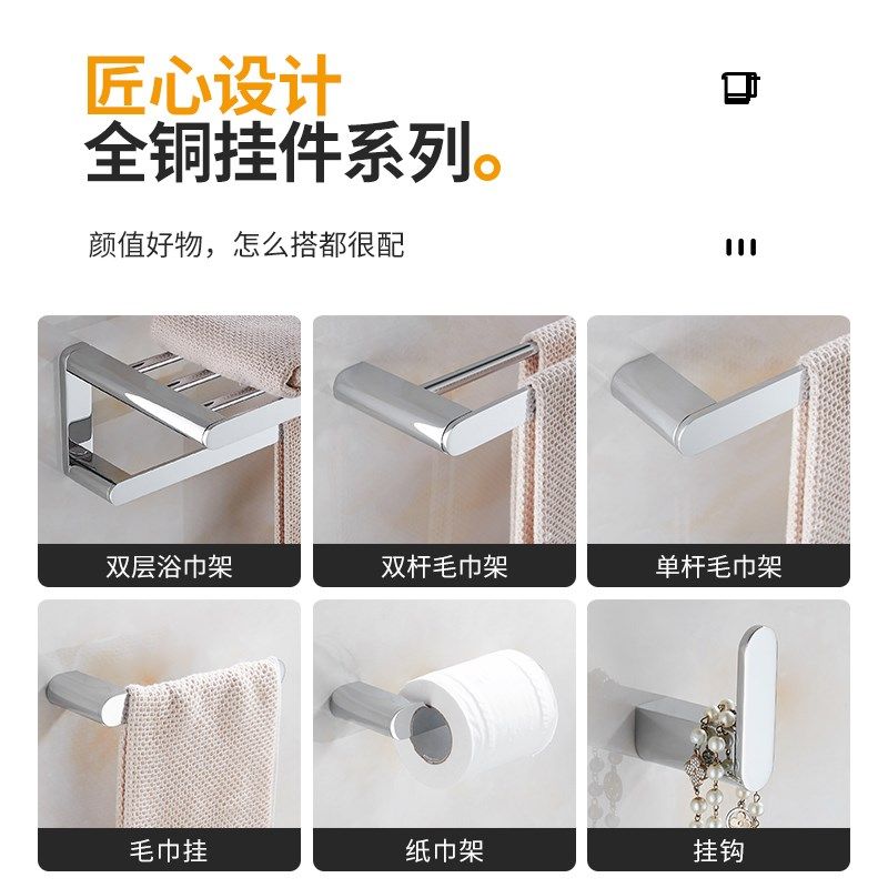 标帕全铜毛巾架卫生间毛巾杆浴室浴巾架置物架卫浴五金挂件套装
