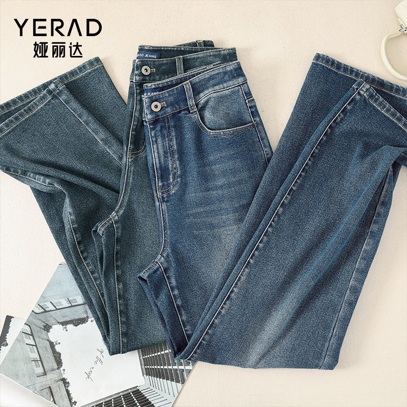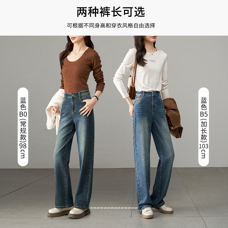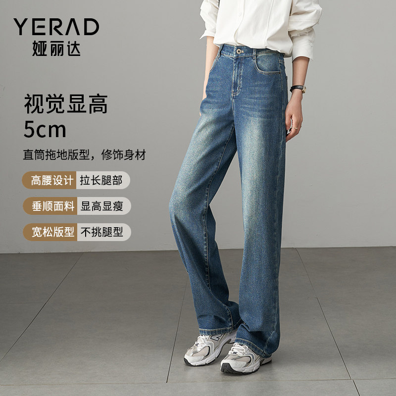 娅丽达女裤2026春季新款窄版阔腿牛仔裤女宽松直筒牛仔长裤