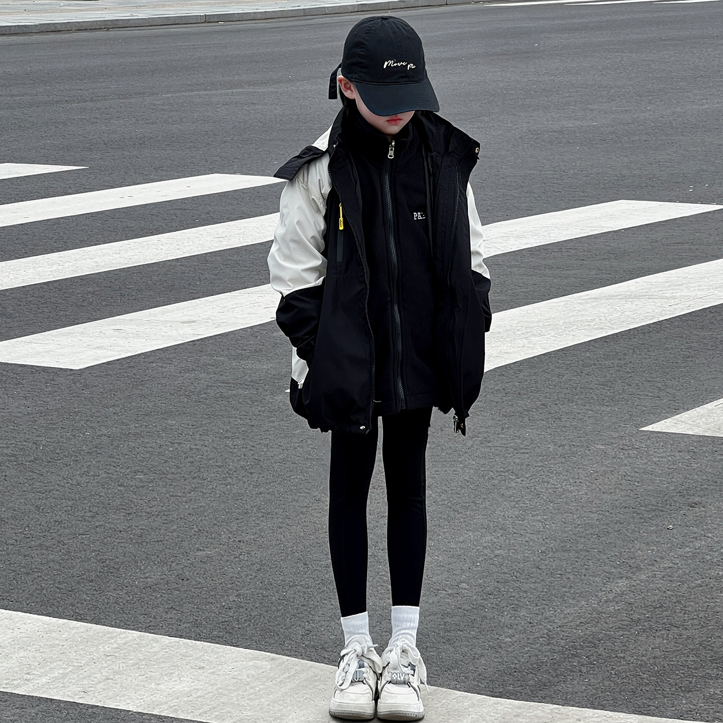 女童秋外套2025新款儿童冲锋衣三合一可拆卸女大童秋装洋气户外服