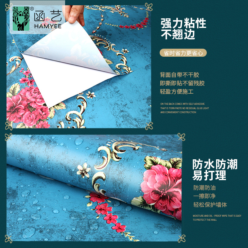 法式复古田园墙纸2024新款网红自粘客厅卧室背景墙高级感防潮壁纸