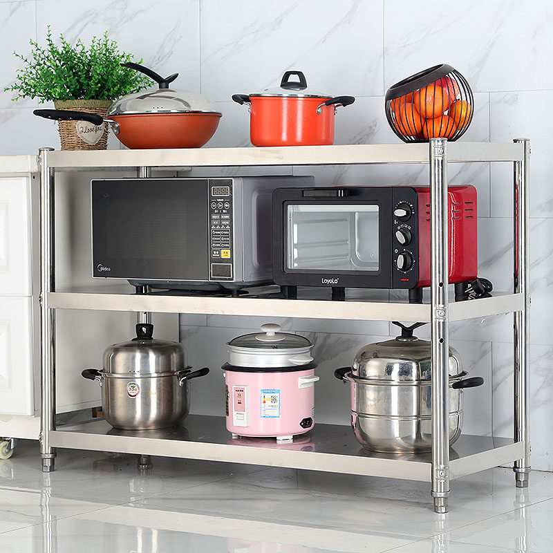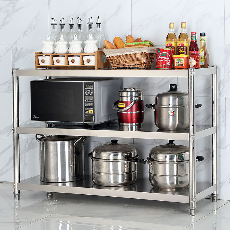 加厚不锈钢货架三层厨房饭店商用仓储杂物收纳锅架置物架落地定做