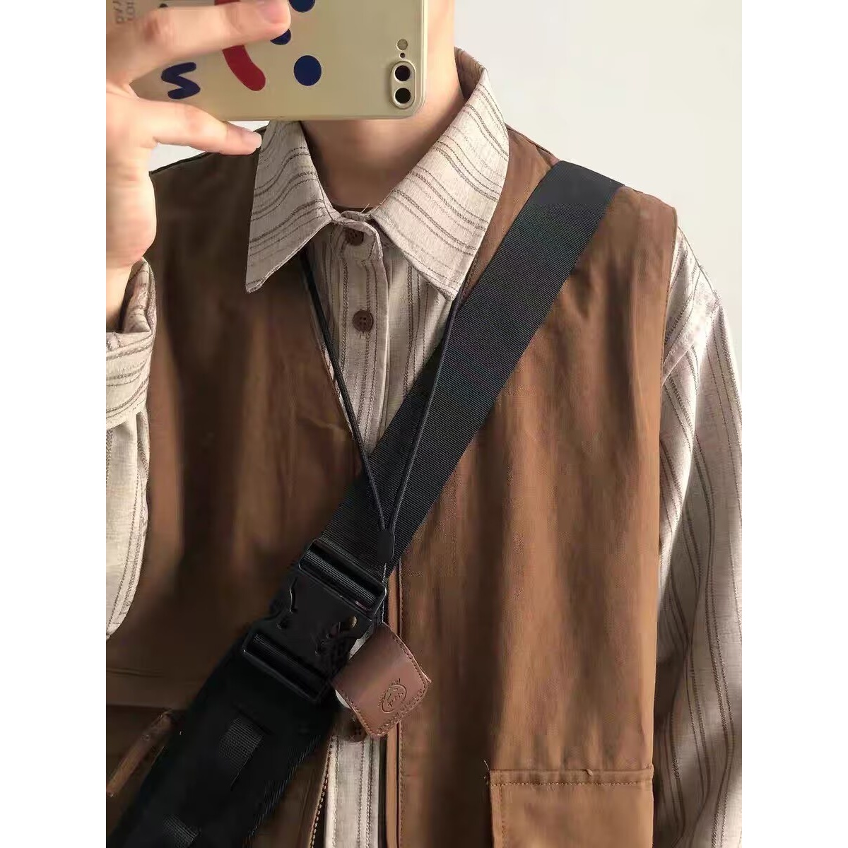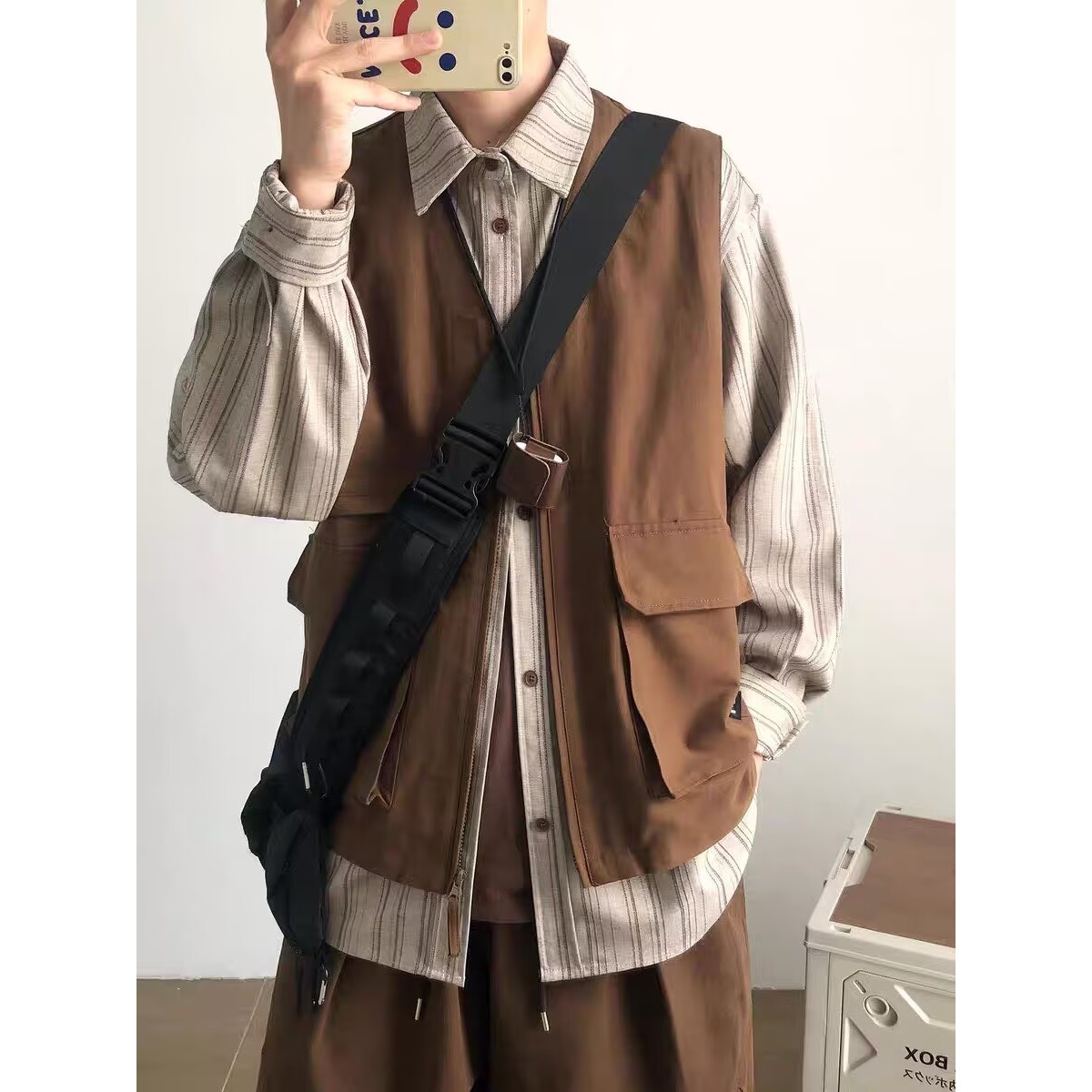 春秋三件套日系复古竖条纹灰色衬衫男女宽松休闲翻领叠穿长袖衬衣