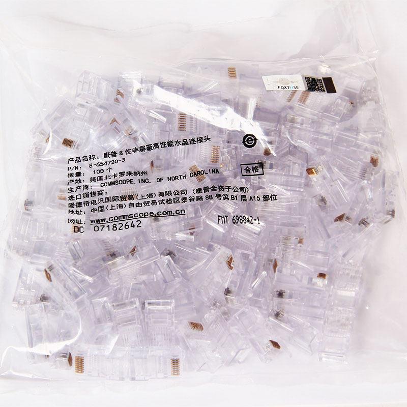 AMP/康普安普超五类水晶头100个RJ45非屏蔽网线8芯8-554720-3正品
