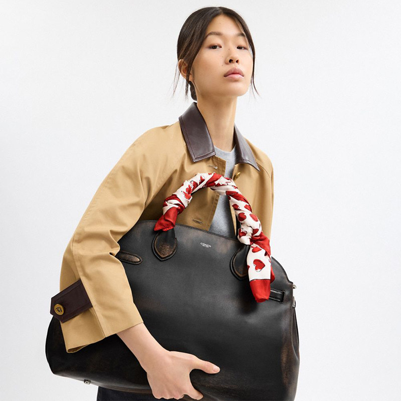 COACH/蔻驰女士涂鸦爱心印花桑蚕丝方形围巾设计感高级感