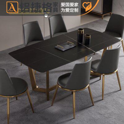 金属伸缩餐台极简现代简约轻奢港式岩板餐桌餐椅长方形桌组合时尚