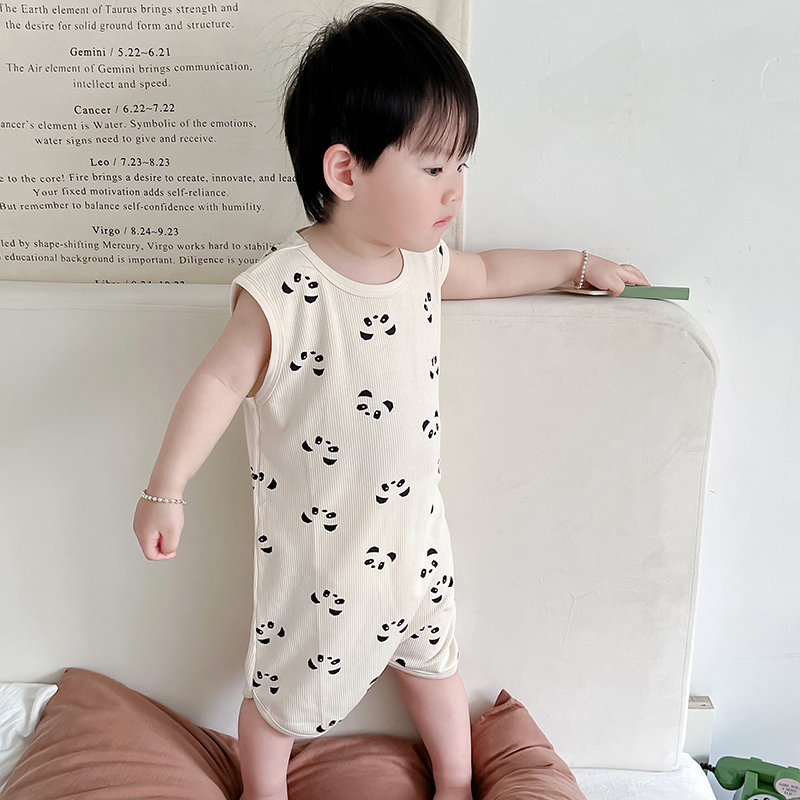 夏季儿童连体睡衣男童无袖睡袍薄款女宝宝护肚防着凉背心睡裙纯棉