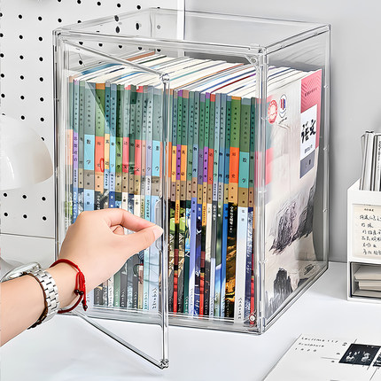书本收纳盒桌面书架亚克力透明大容量防尘书柜学生课本整理储物箱