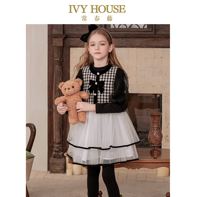 IVY HOUSE常春藤儿童装女童连衣裙秋款 格纹多层网纱小香风背心裙