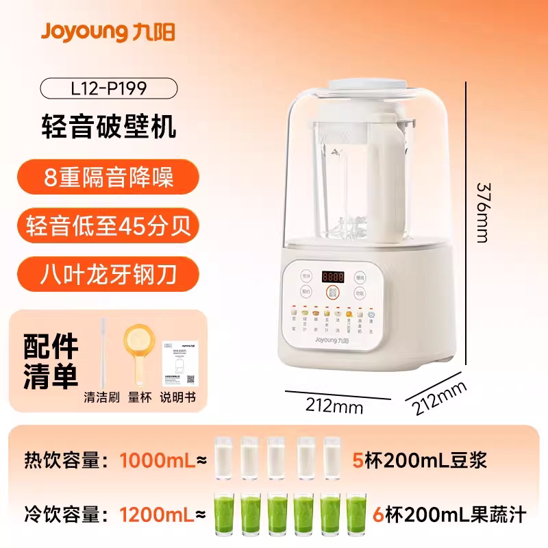 九阳破壁机全自动轻音降噪家用多功能豆浆机辅食机料理机P199
