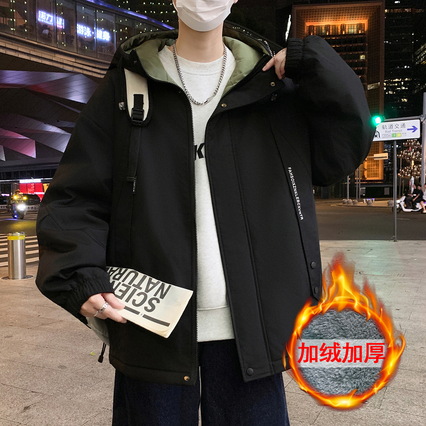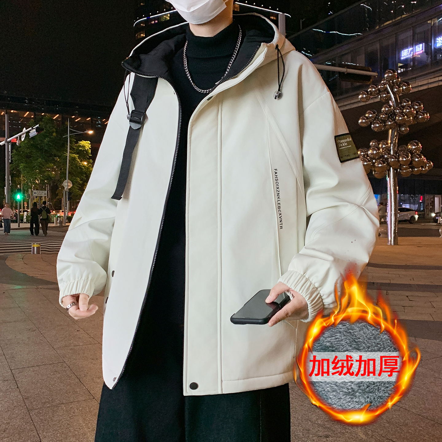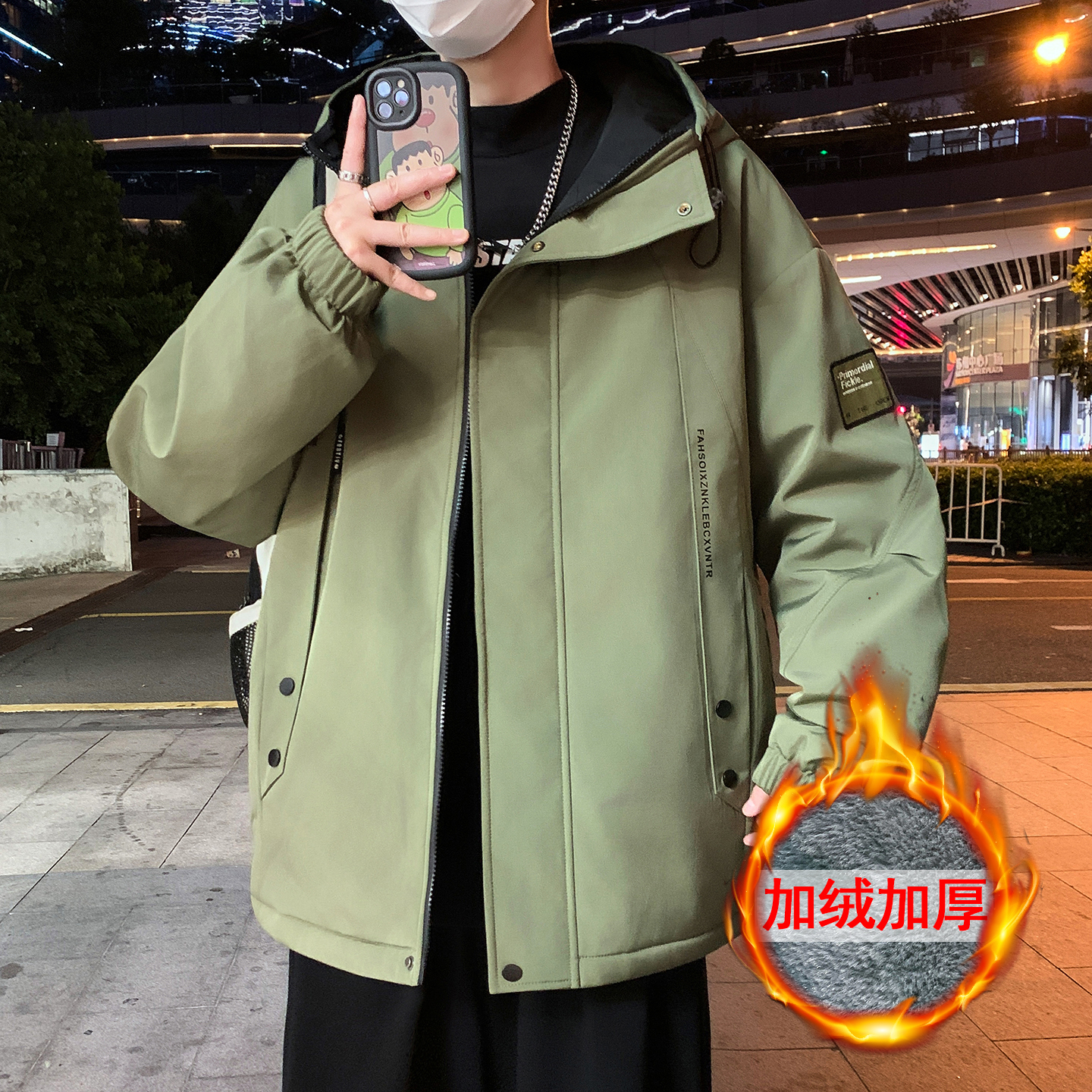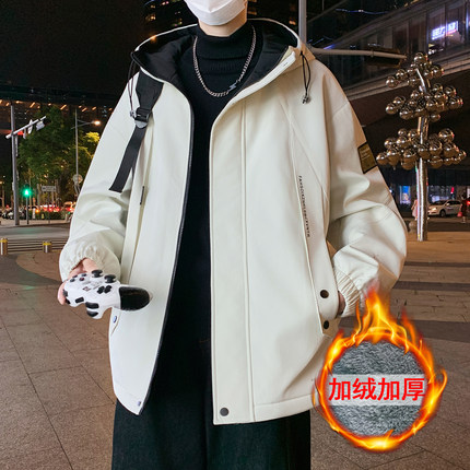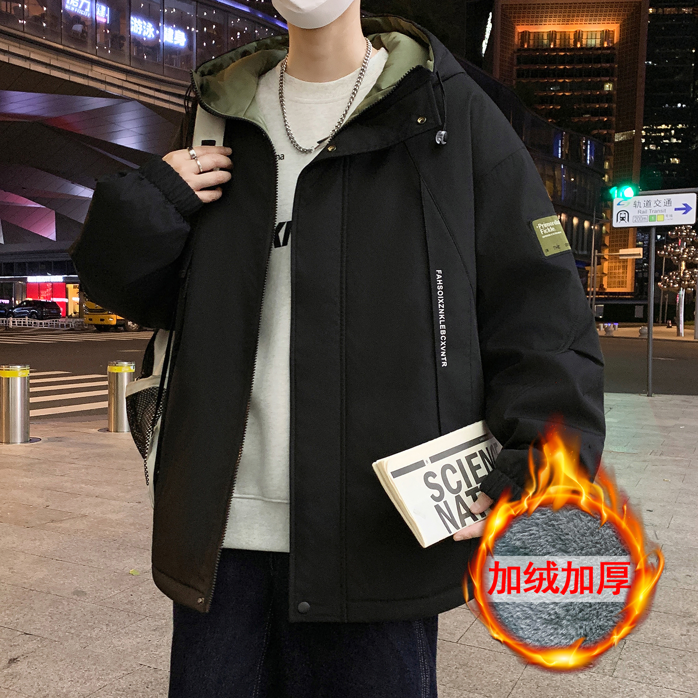 连帽外套男士秋冬季加绒加厚潮流百搭休闲夹克帅气青少年连帽外衣