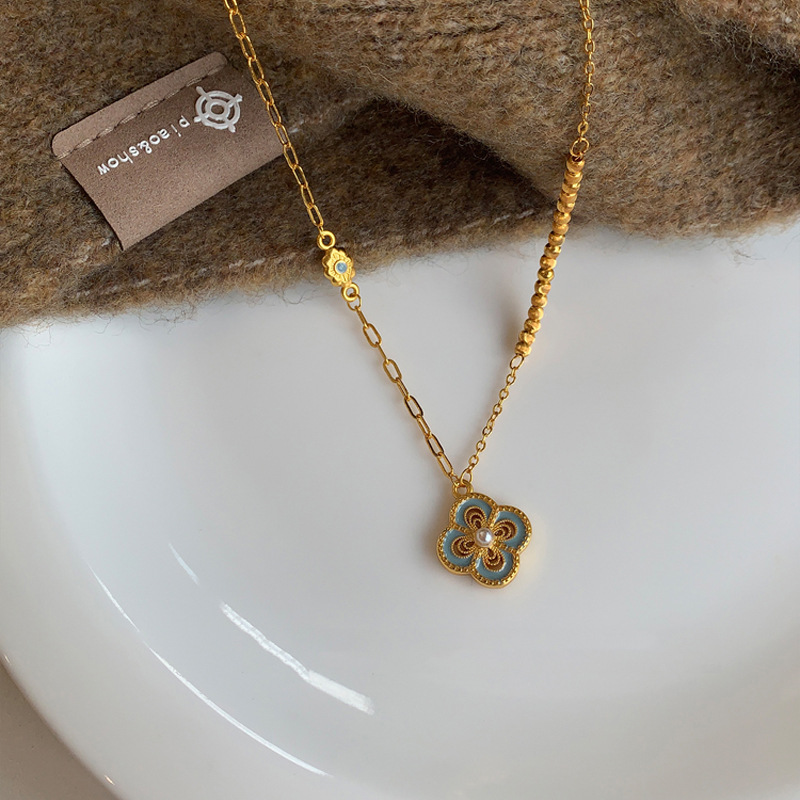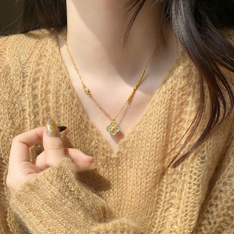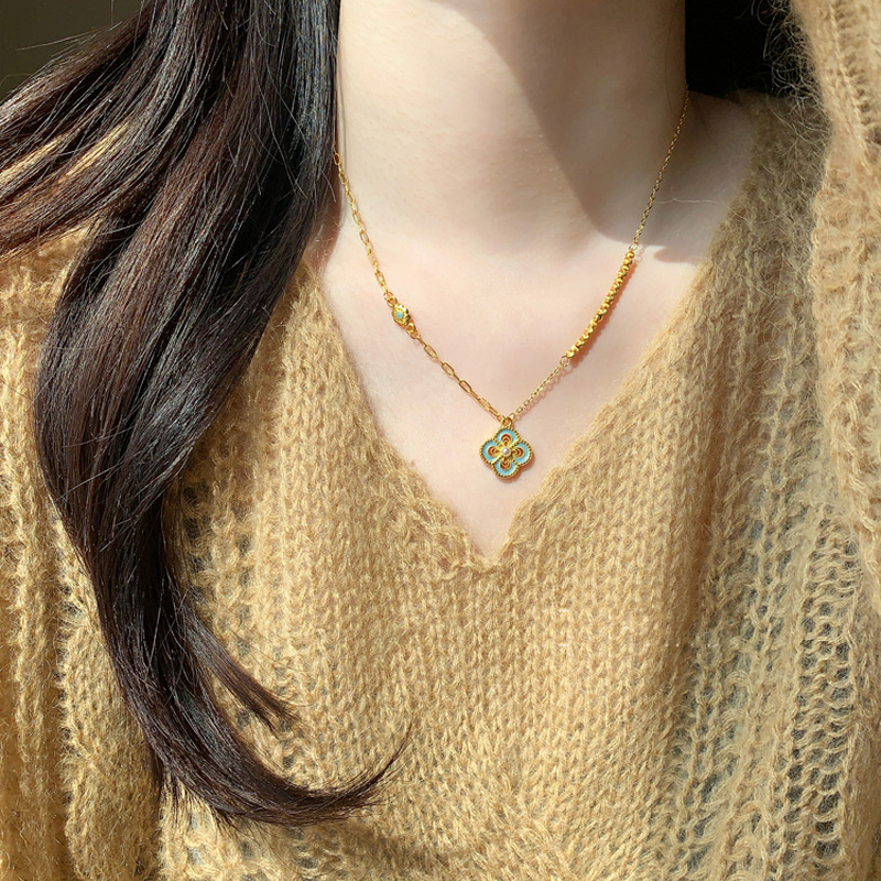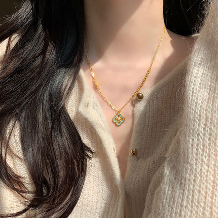 新中式珐琅四叶草吊坠项链女款2025新款高级感轻奢小众锁骨链颈链