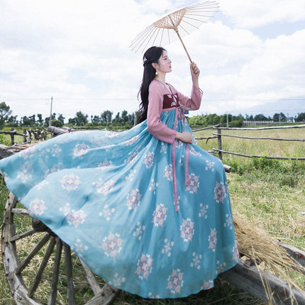 现货【琼花房】雪纺连衣裙女2025春季新款国风襦裙印花长裙仙女裙