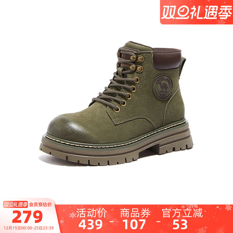 骆驼女鞋2025秋季新款厚底马丁靴女款厚底复古工装靴英伦大黄靴子