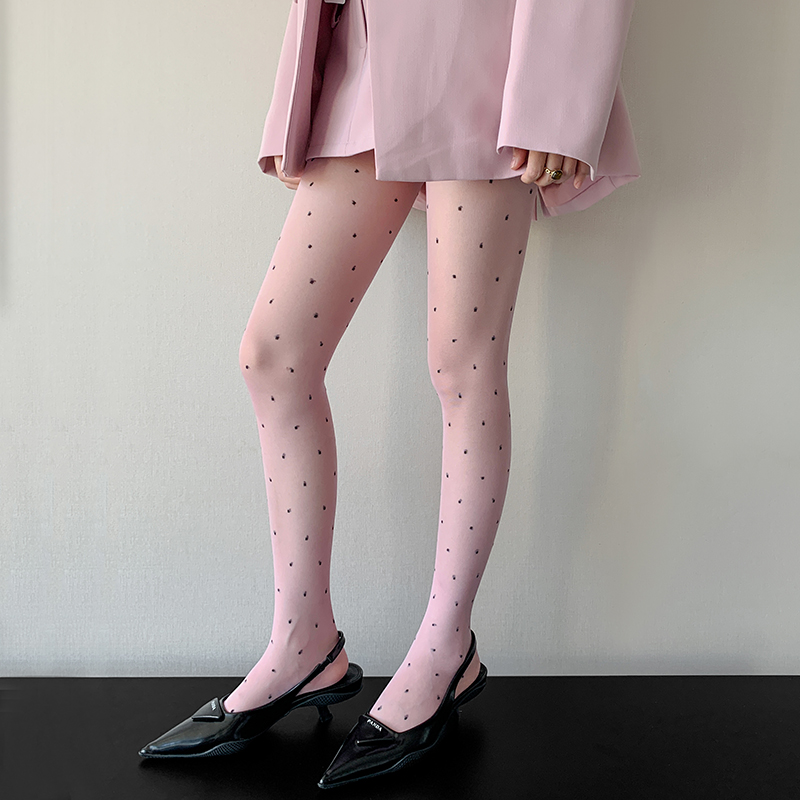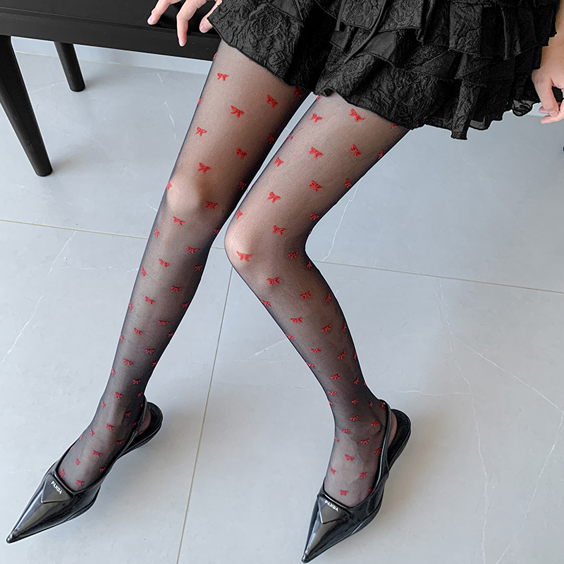 红点黑丝点点提花丝袜女夏季超薄性感防勾丝纯欲蝴蝶结春秋连裤袜