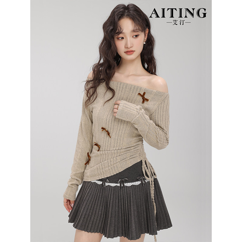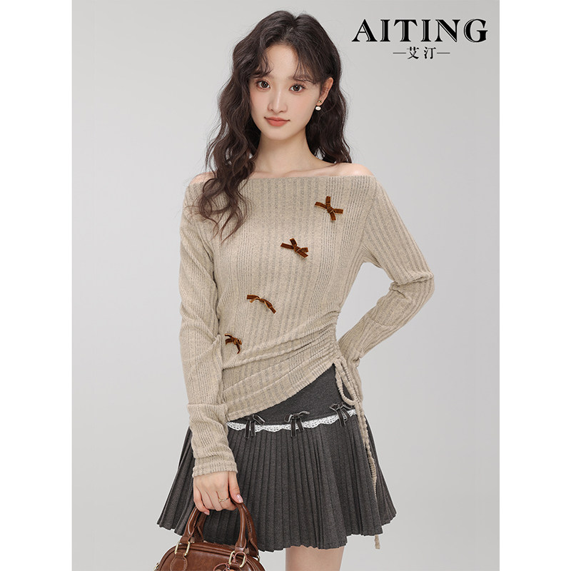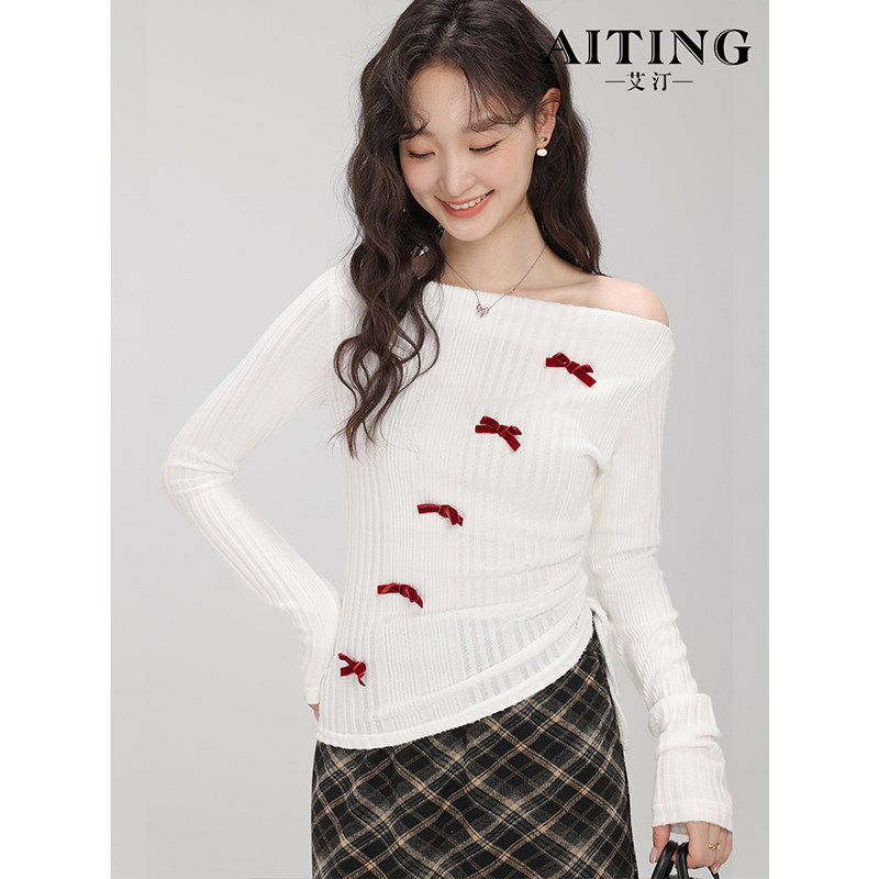 纯欲风辣妹露肩一字领长袖t恤女2025秋装新款修身内搭短款打底衫