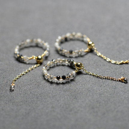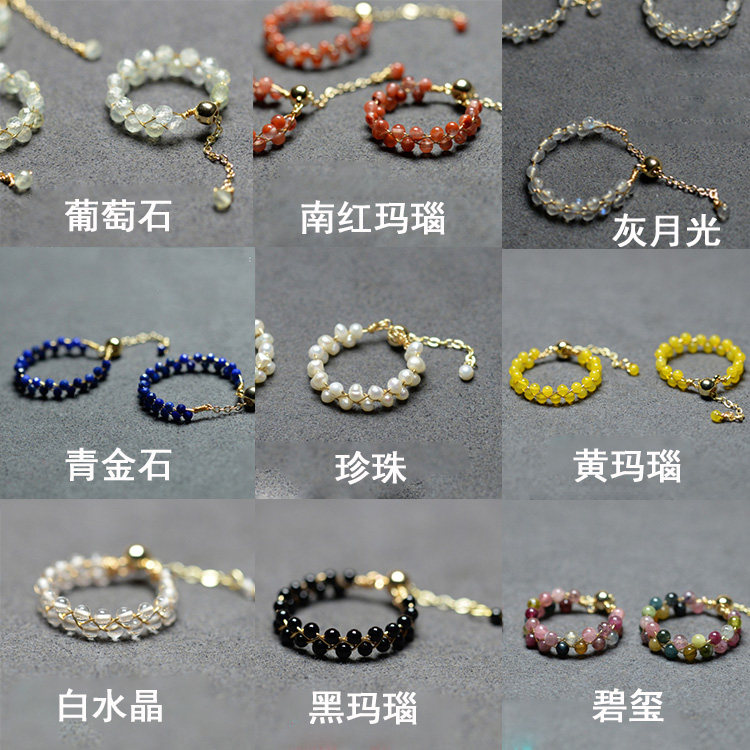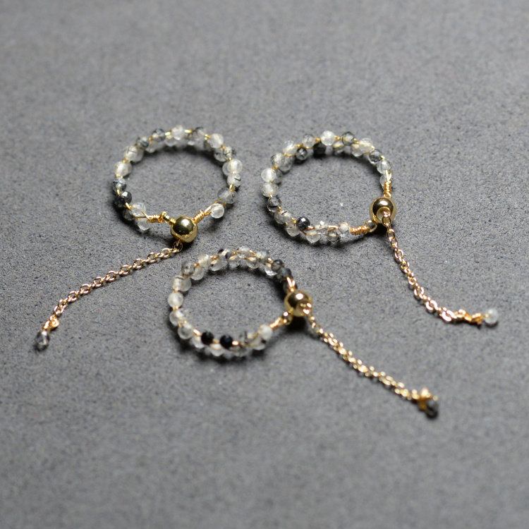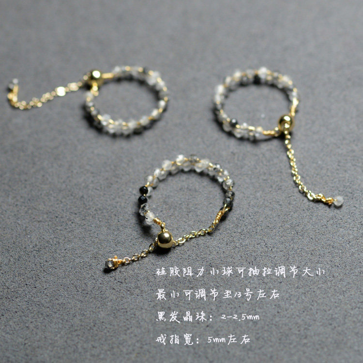 天然黑发晶戒指14k镀金DIY编织女款时尚个性指环可以调大清新礼物