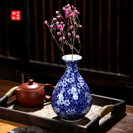 南秋陶瓷景德镇茶桌冰梅小花瓶