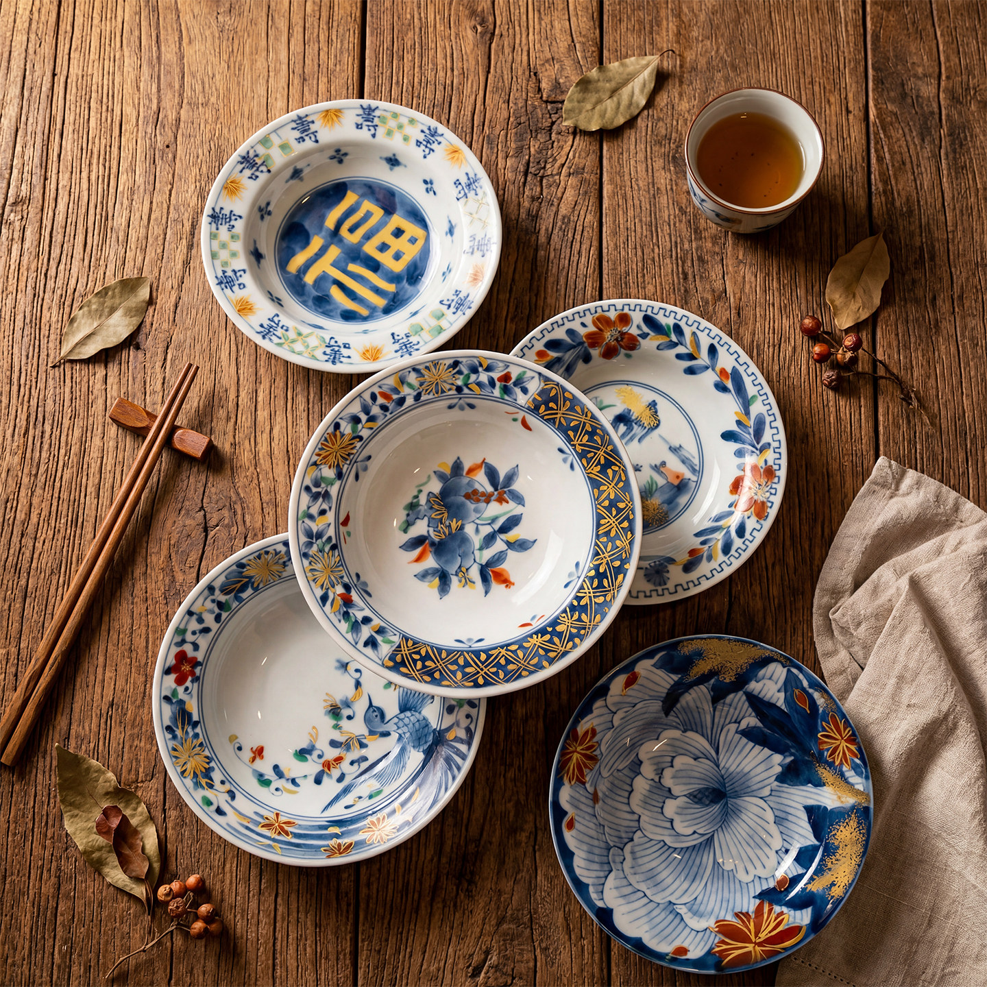 日本进口蓝凛堂和风日式米饭碗陶瓷盘子大深菜盘家用餐具礼盒套装
