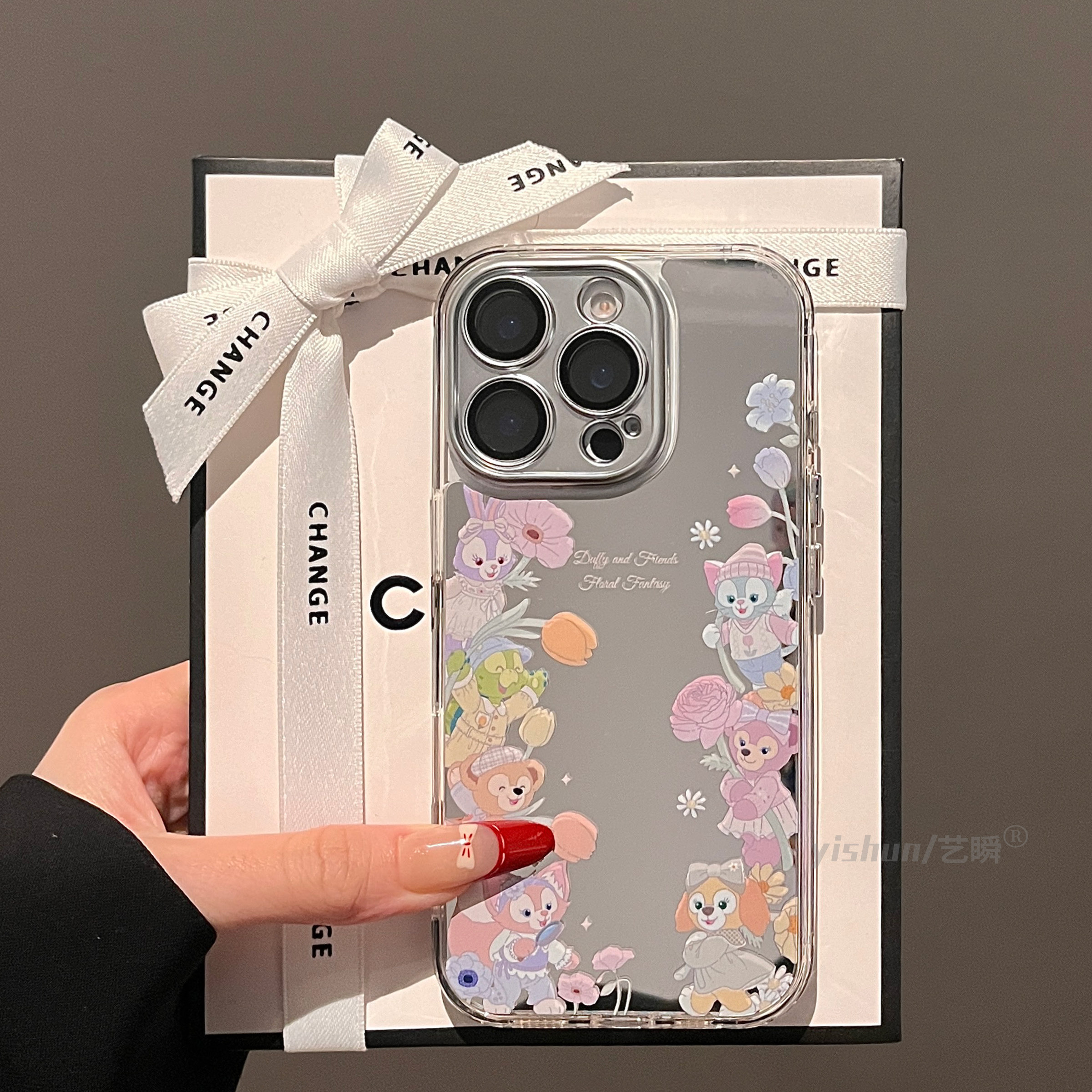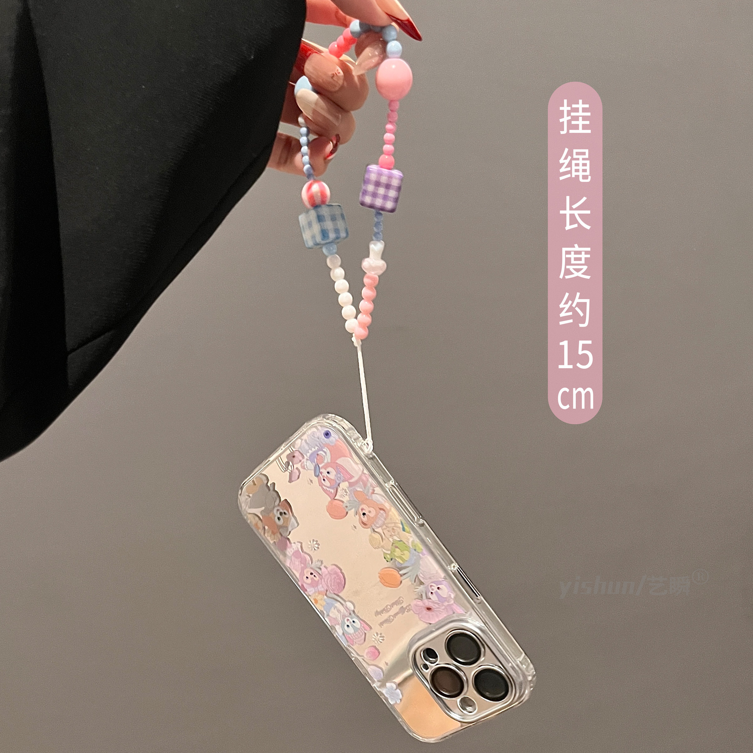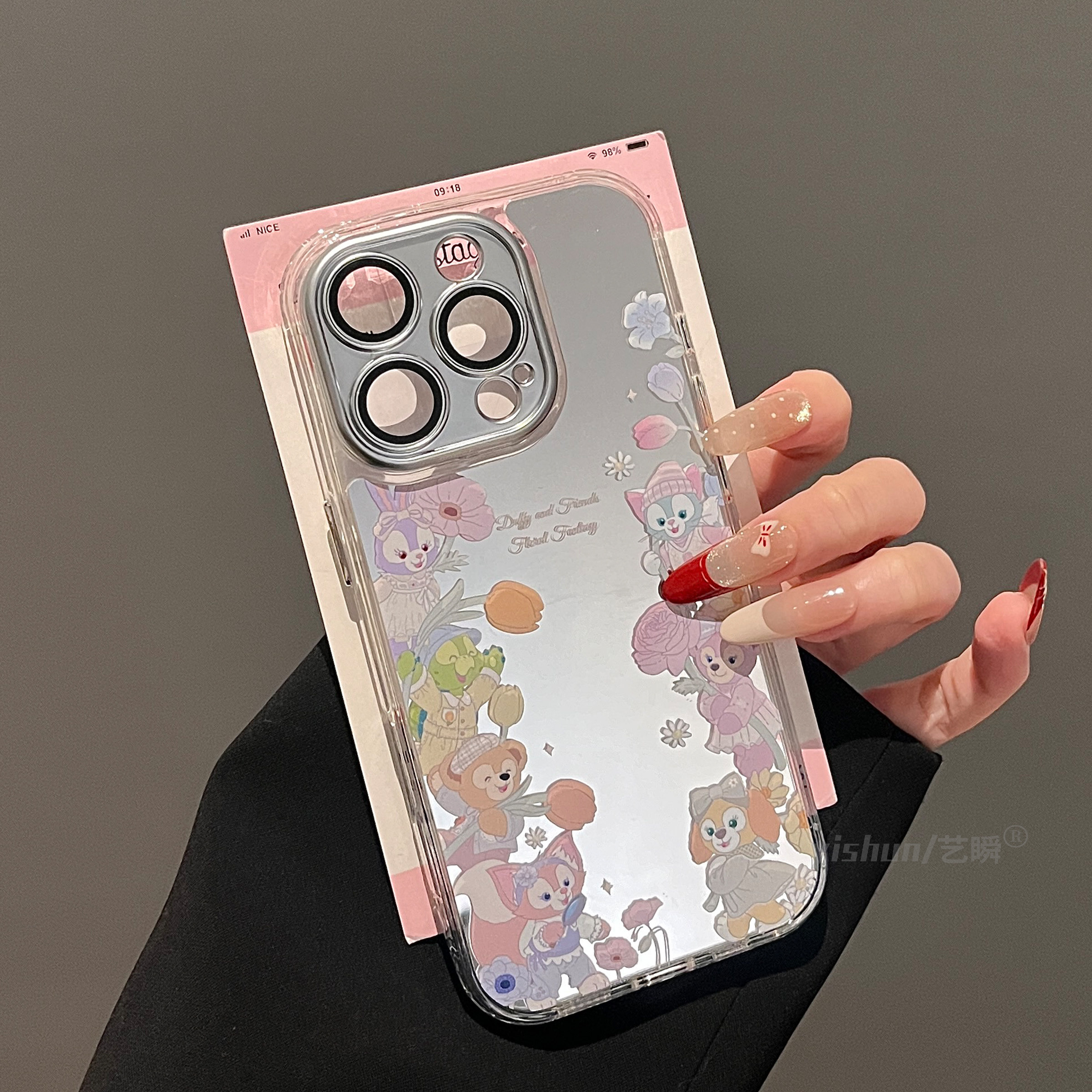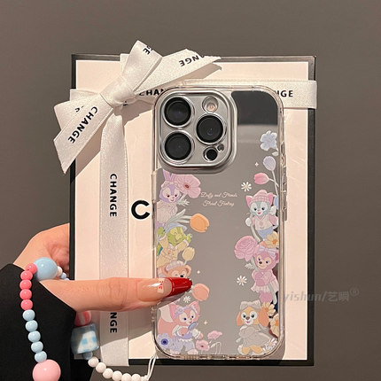 适用iPhone16ProMax手机壳补妆镜面苹果17春日花朵迪士尼七宝15pm可爱13卡通14plus女款12带挂绳11镜子保护套