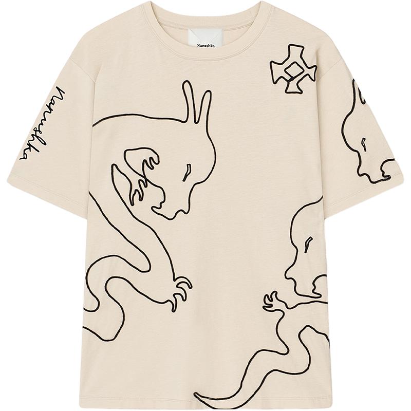 【甄选折扣】NANUSHKA 女士 REECE 休闲小众设计龙纹刺绣短袖T恤