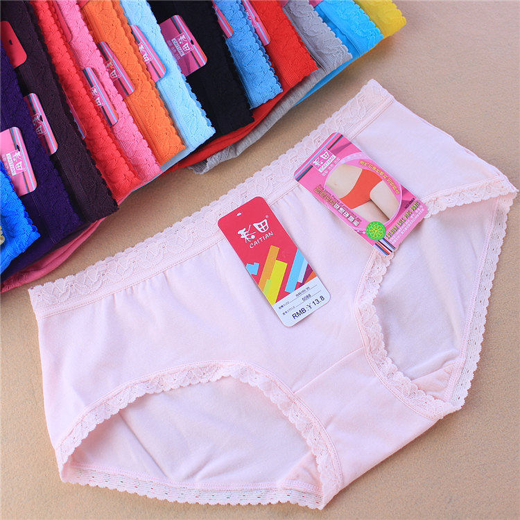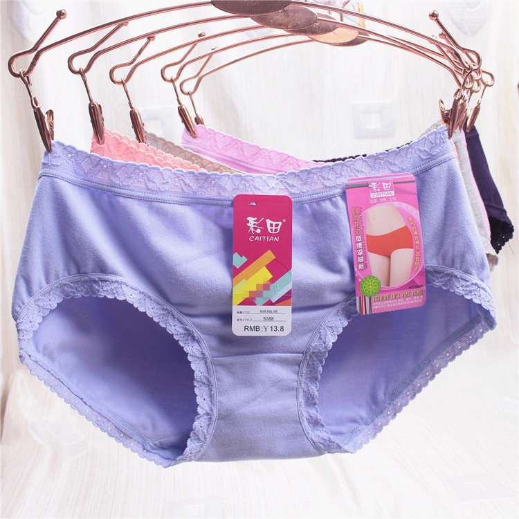 彩田内裤女式纯棉全棉质面料透气性感蕾丝无痕少女生低腰三角裤头
