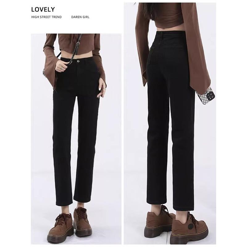 黑色烟管直筒牛仔裤女2025春秋夏季薄款小个子高腰法棍七八九分裤