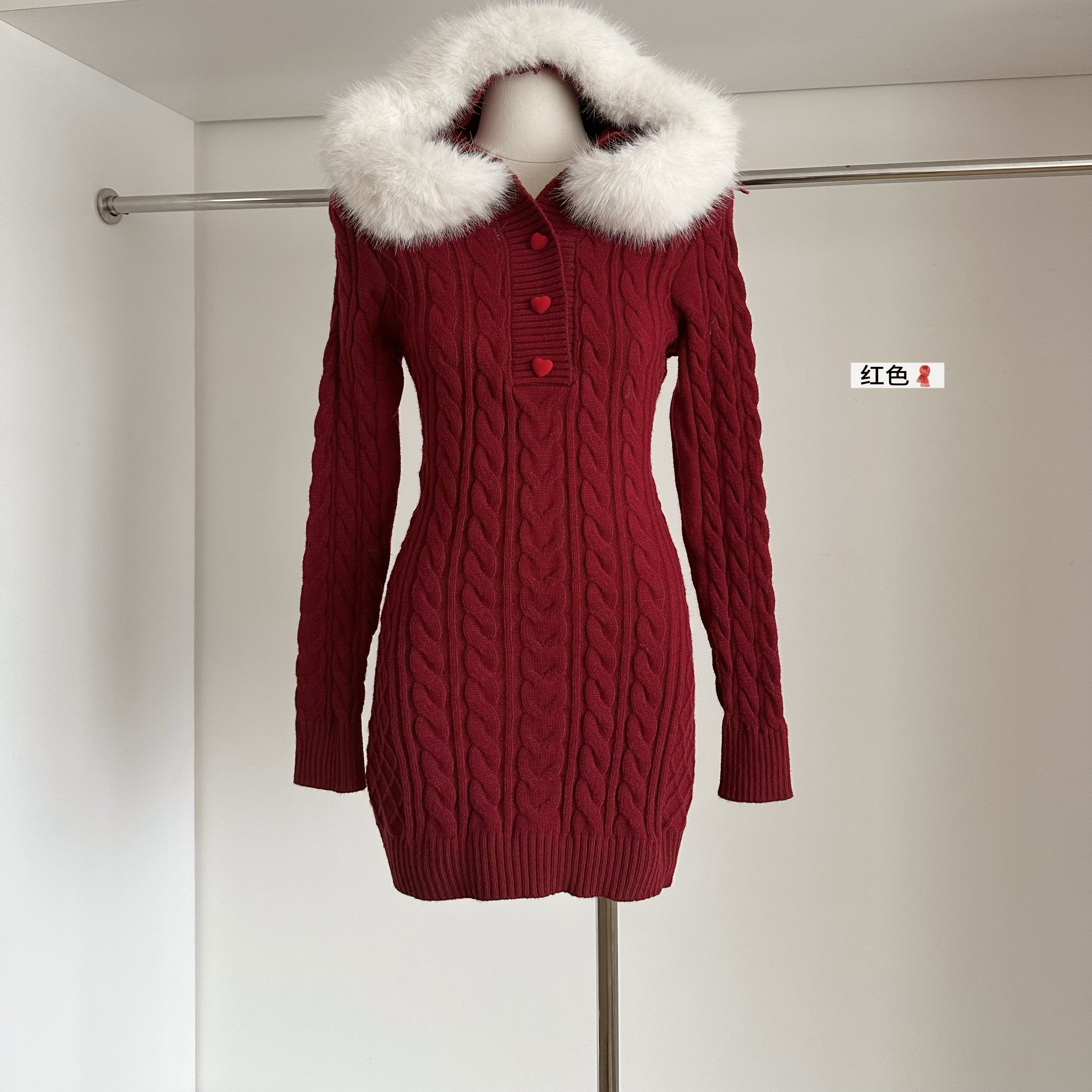 【赠送运费险】狐狸毛领针织裙