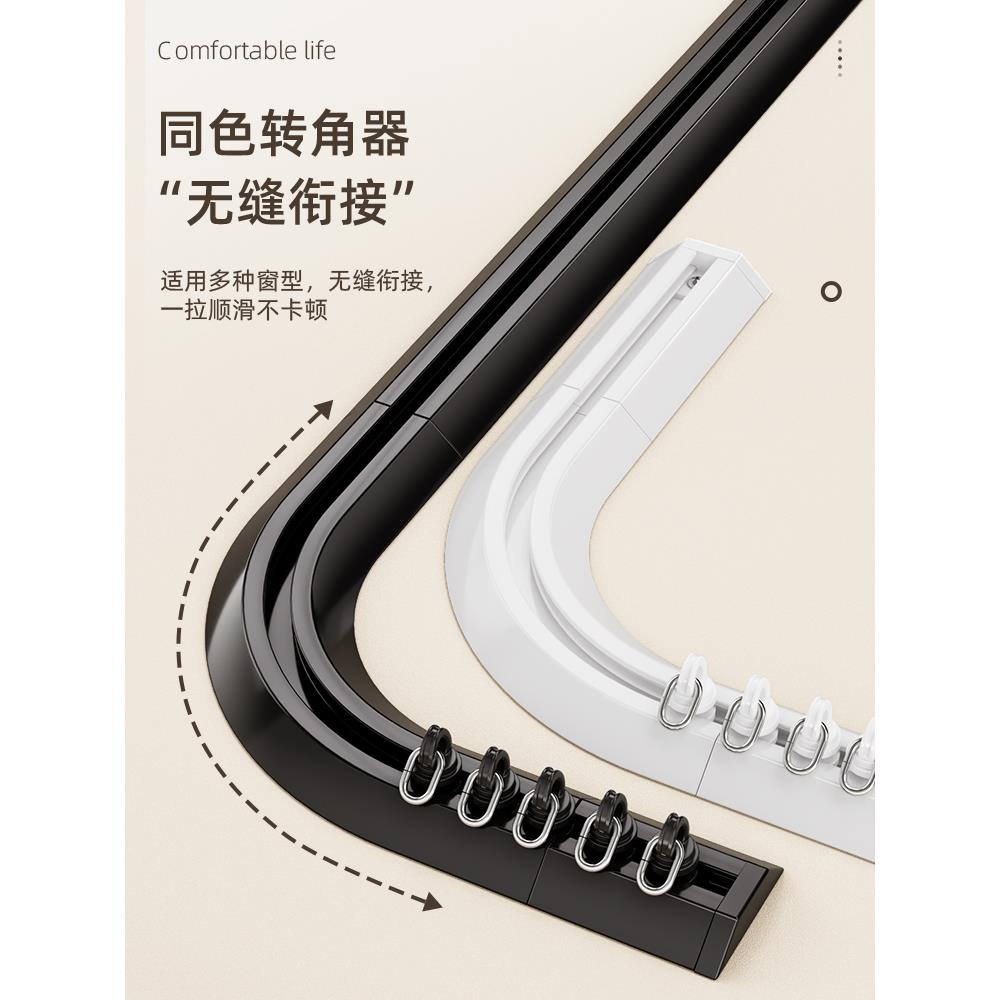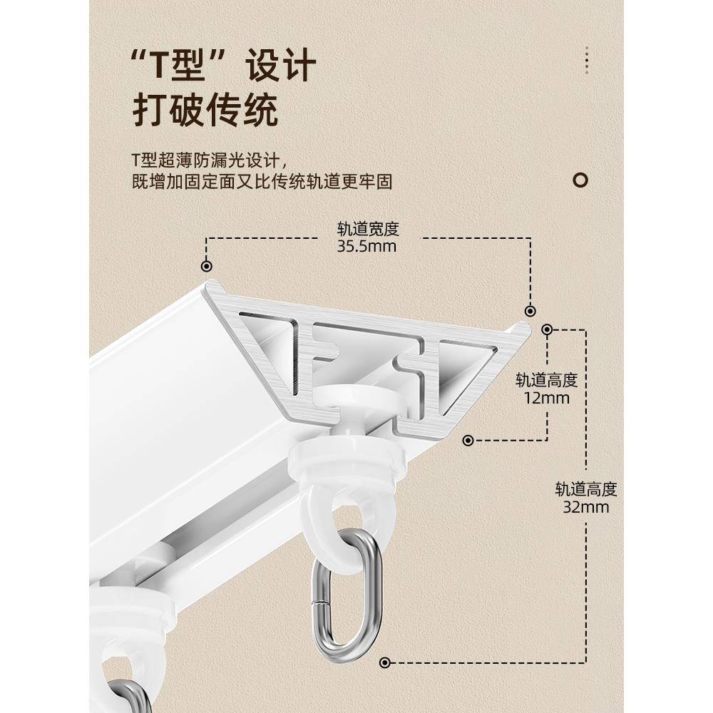 窗帘轨道免打孔静音滑轨顶侧装超薄隐形铝合金单双轨自粘导轨