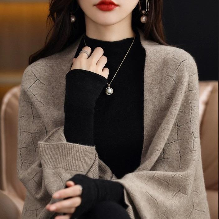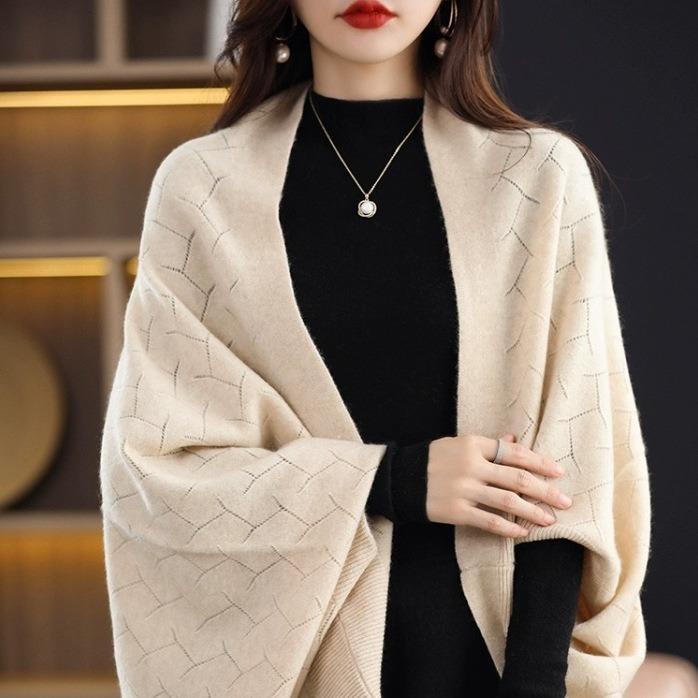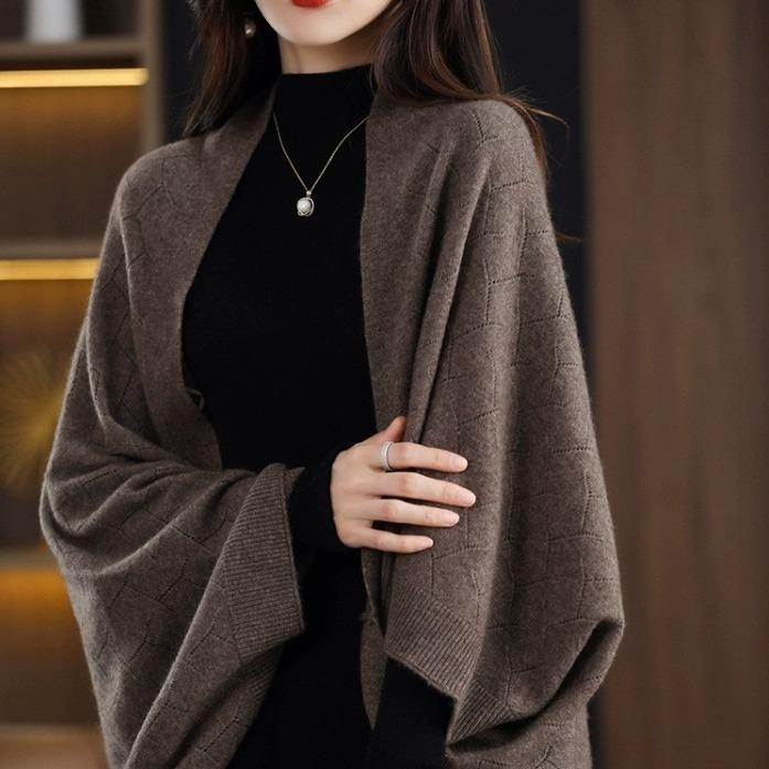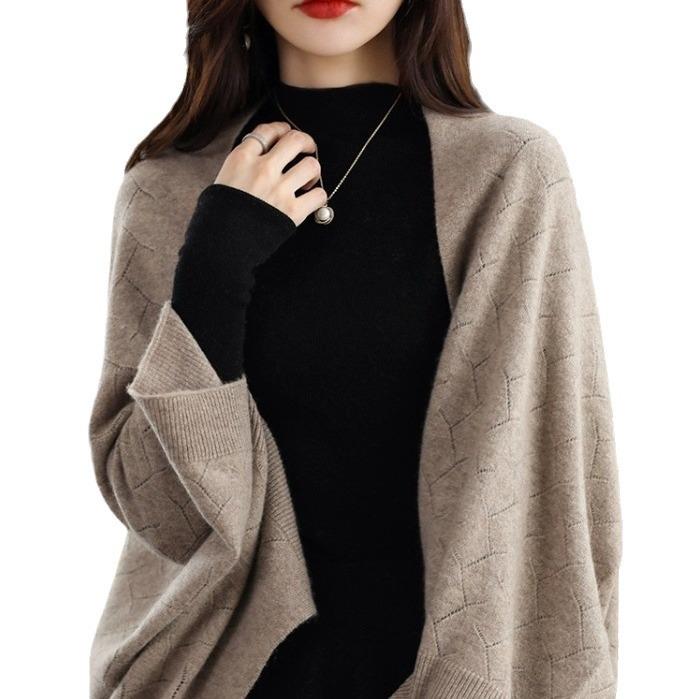 秋冬针织长袖外套披肩围巾两用新款色宽松百搭外搭斗篷开衫1006z