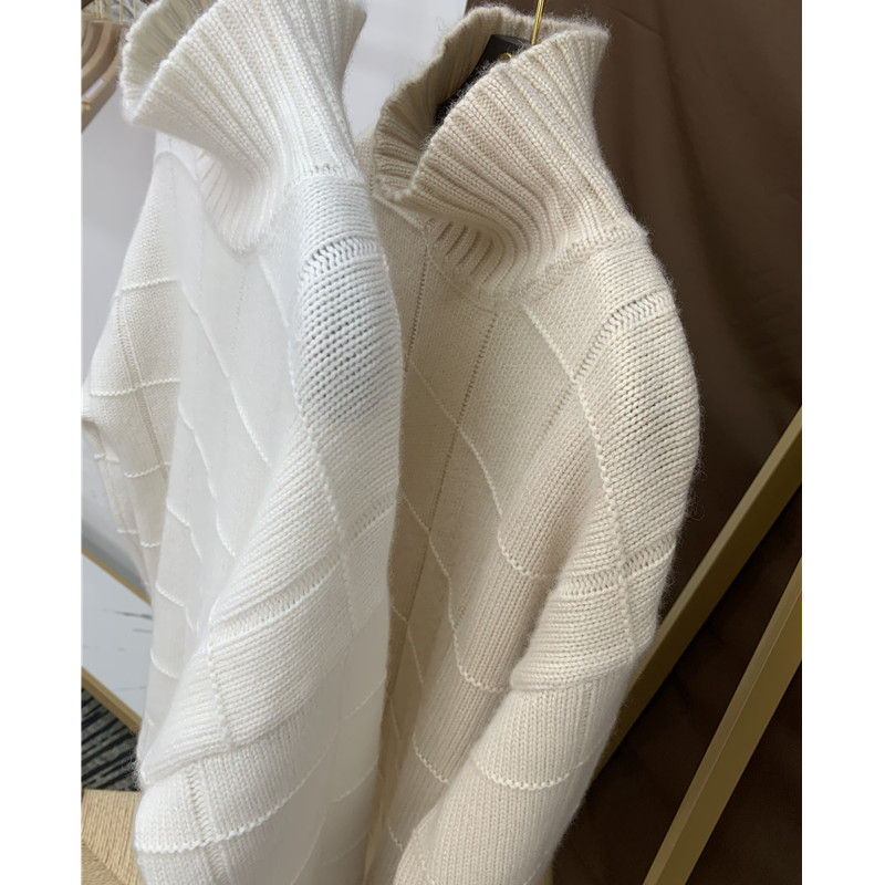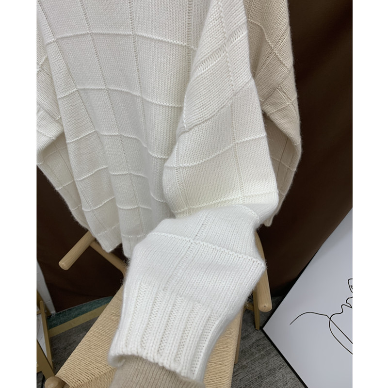 秋冬季五股加厚羊绒衫女士高领套头方块针织宽松打底羊毛羊绒毛衣