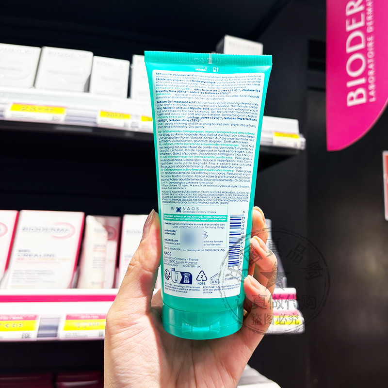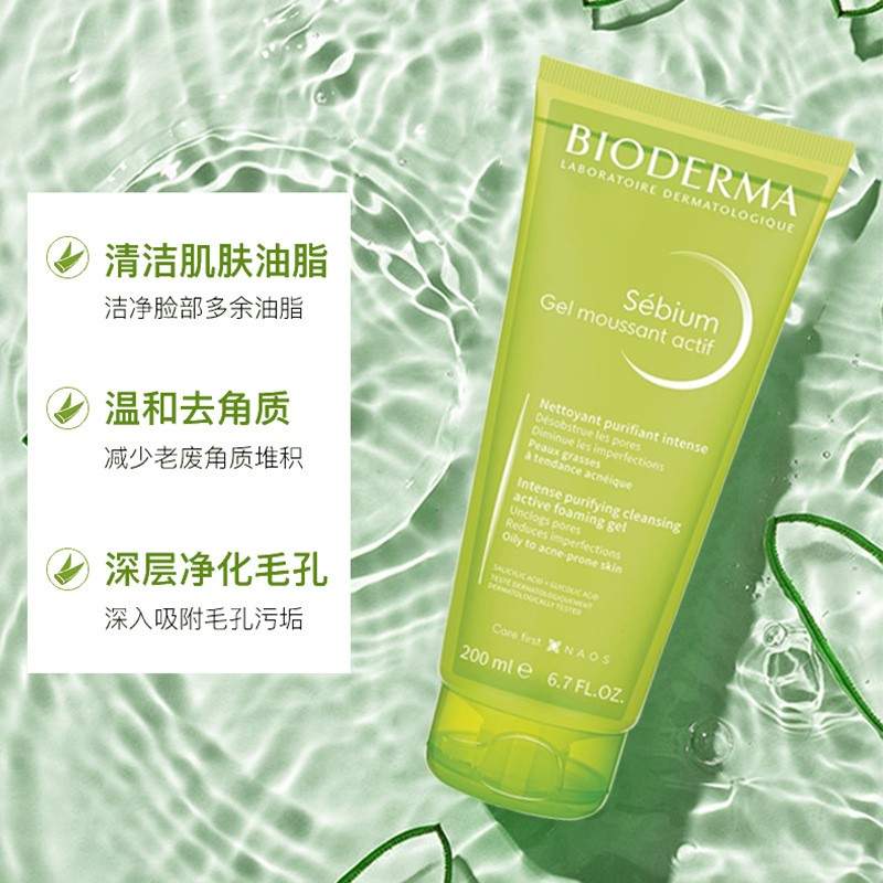 BIODERMA/贝德玛净妍水杨酸洁面啫喱抗瑕疵清爽控油细致毛孔200ml