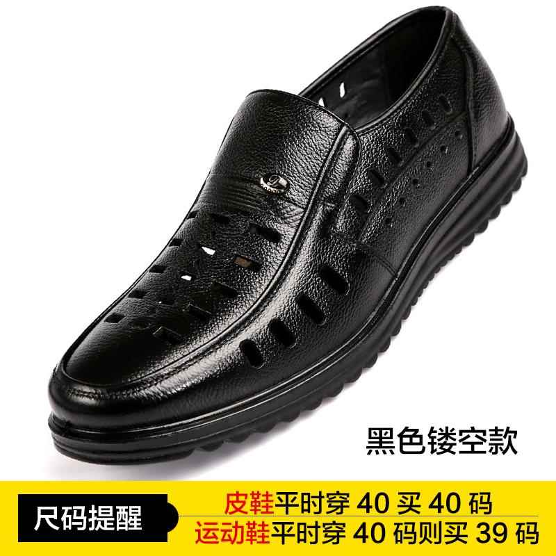 高档士春季男皮男真皮休闲中老年男鞋软底皮凉鞋防滑鞋镂空透爸气