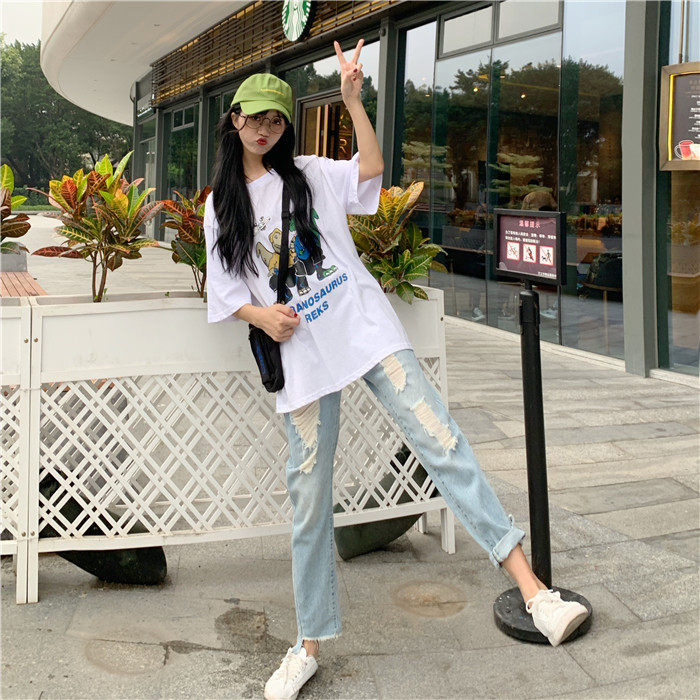 短袖T恤韩版宽松晚晚风半截袖日系少女嘻哈夏装泫雅风上衣服ins潮