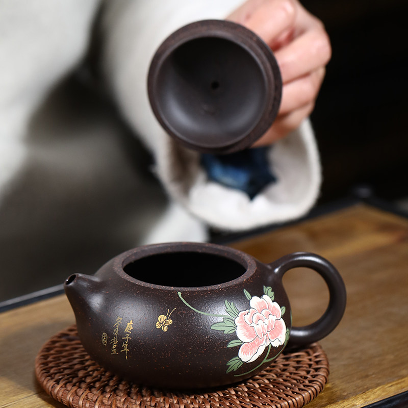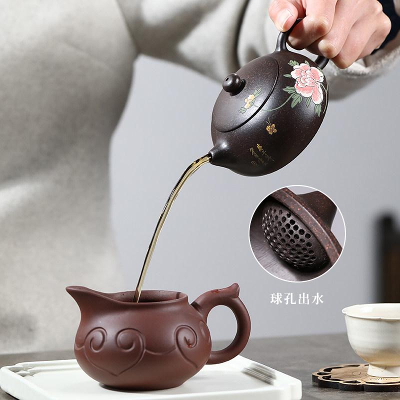 宜兴纯全手工紫砂壶名家正宗黑金砂玉乳扁腹西施壶小茶壶单人茶具