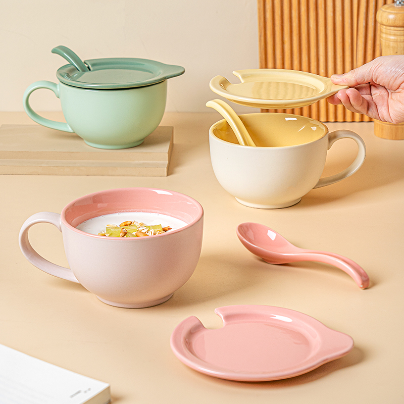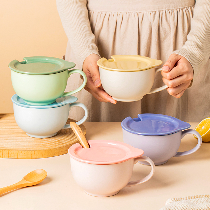 早餐杯带盖燕麦杯陶瓷马克杯大容量汤杯酸奶杯麦片杯牛奶杯