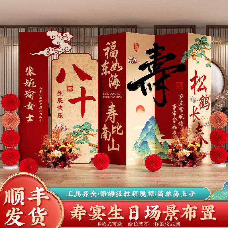老人60岁寿宴生日场景布置八十大寿高级感KT板背景墙祝寿氛围装饰