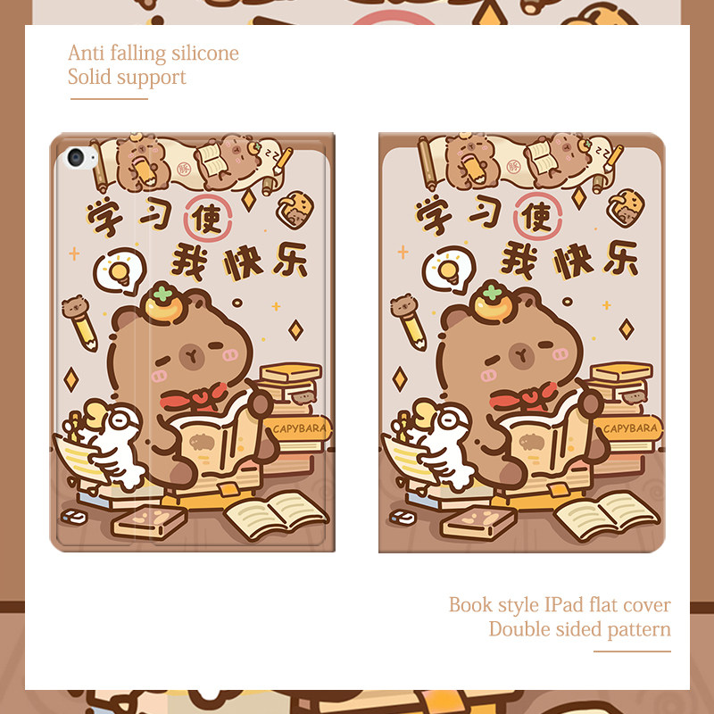 可爱励志卡皮2021/20/19新款ipad适用air4/3/2气囊保护套10.2/9.7寸平板2018笔槽pro11三折mini4/5苹果123壳6