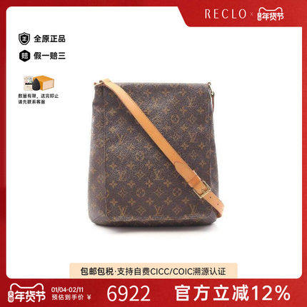 中古LV路易威登女包B级9新musette王菲包涂层防水帆布斜挎包棕色