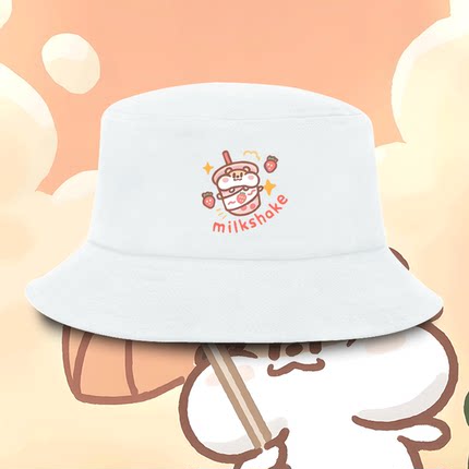 奶茶鼠周边卡通可爱印花男女情侣休闲学生可定制盆帽遮阳帽渔夫帽