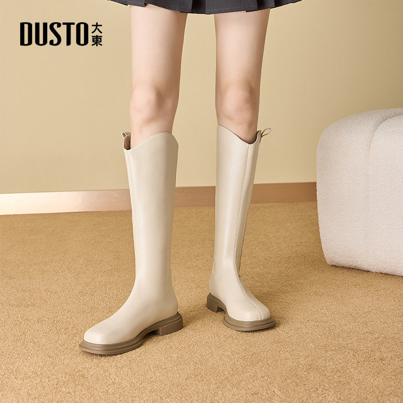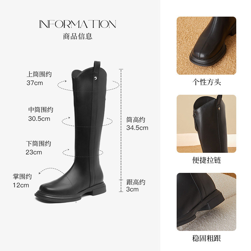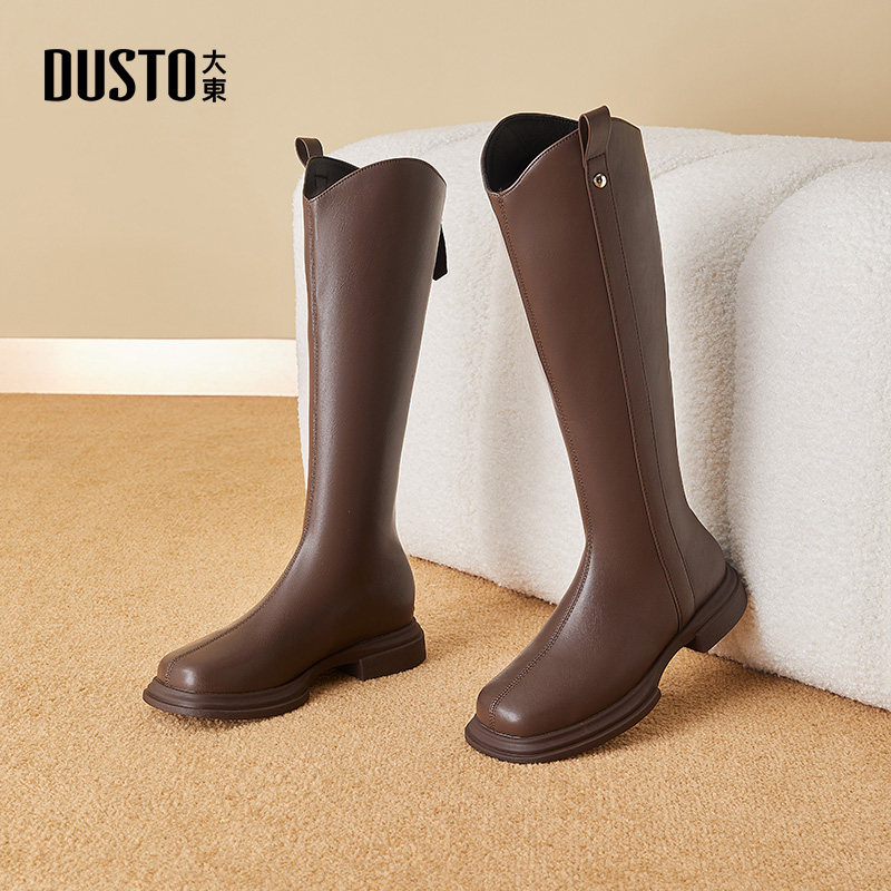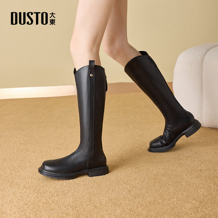 大东长筒靴女鞋冬季休闲时尚不过膝高跟后拉链骑士靴0649
