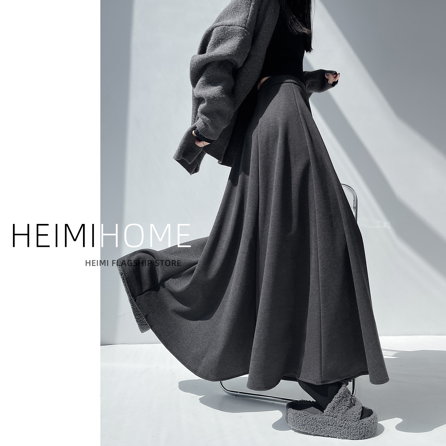 咖色百褶裙半身裙女秋冬季加厚高腰显瘦A字长裙中长款大摆毛呢裙