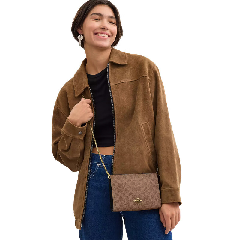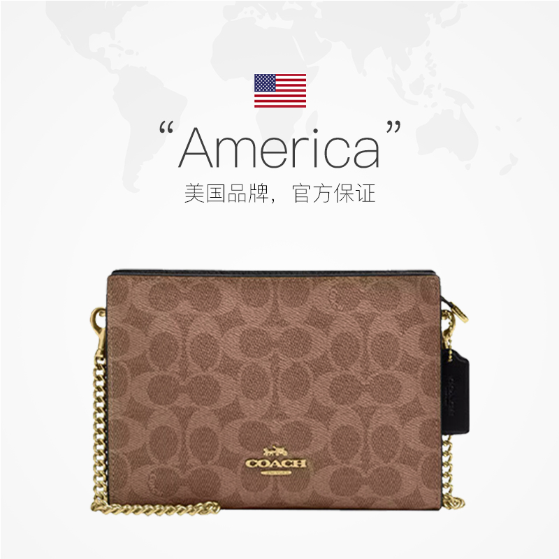 【自营】COACH/蔻驰女链条包Signature Canvas拉链开合单肩斜挎包