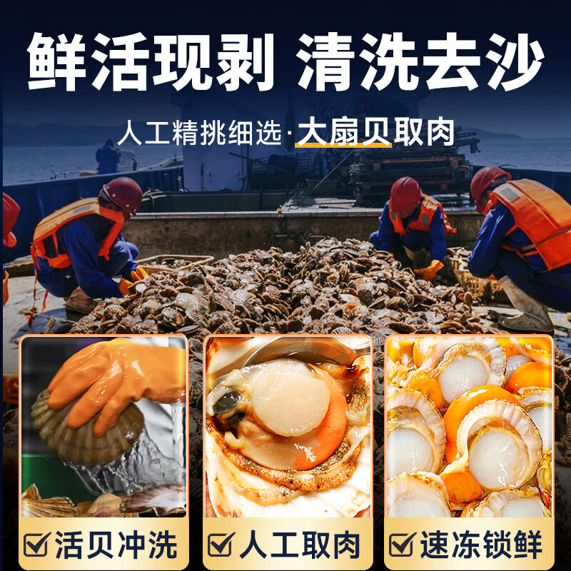 扇贝肉带黄新鲜扇贝鲜活特大冷冻