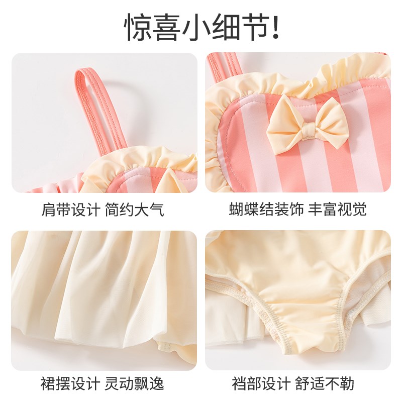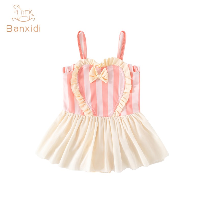 班喜迪儿童泳衣女孩夏季女童吊带纱裙泳装可爱女宝宝连体游泳衣