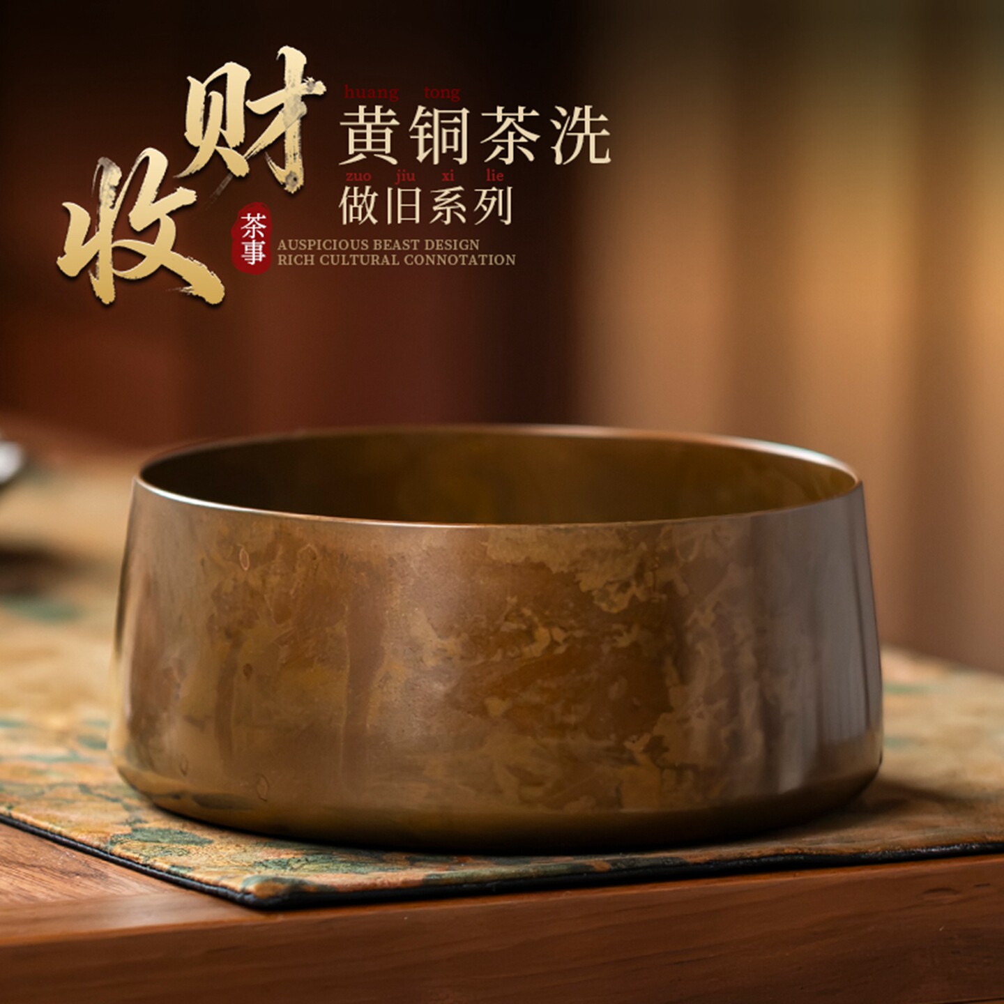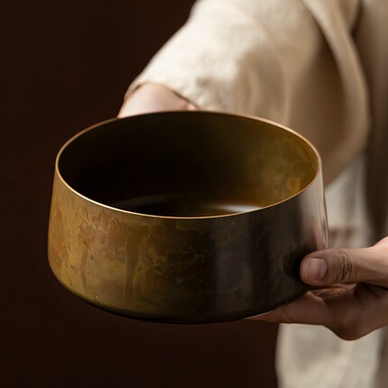 中式复古纯黄铜做旧茶洗家用大容量建水茶渣缸大号水盂废水缸笔洗