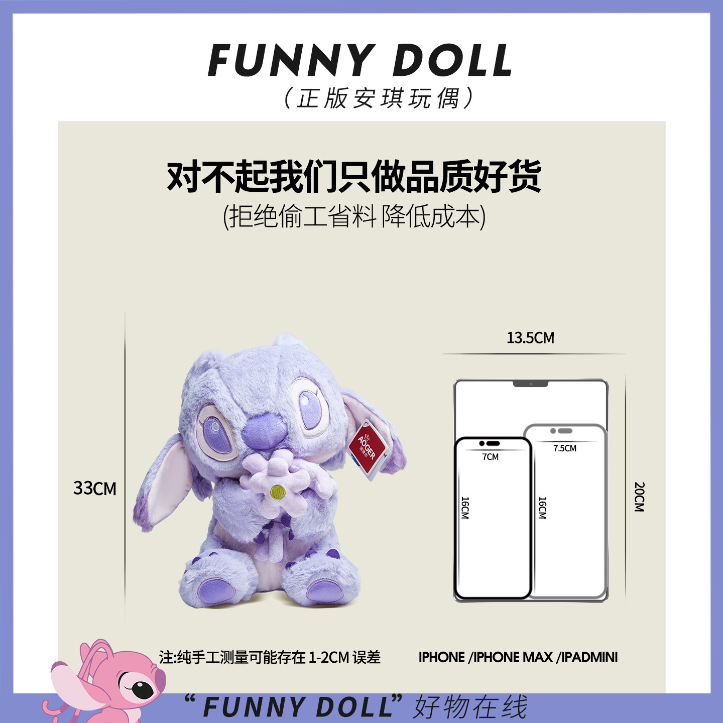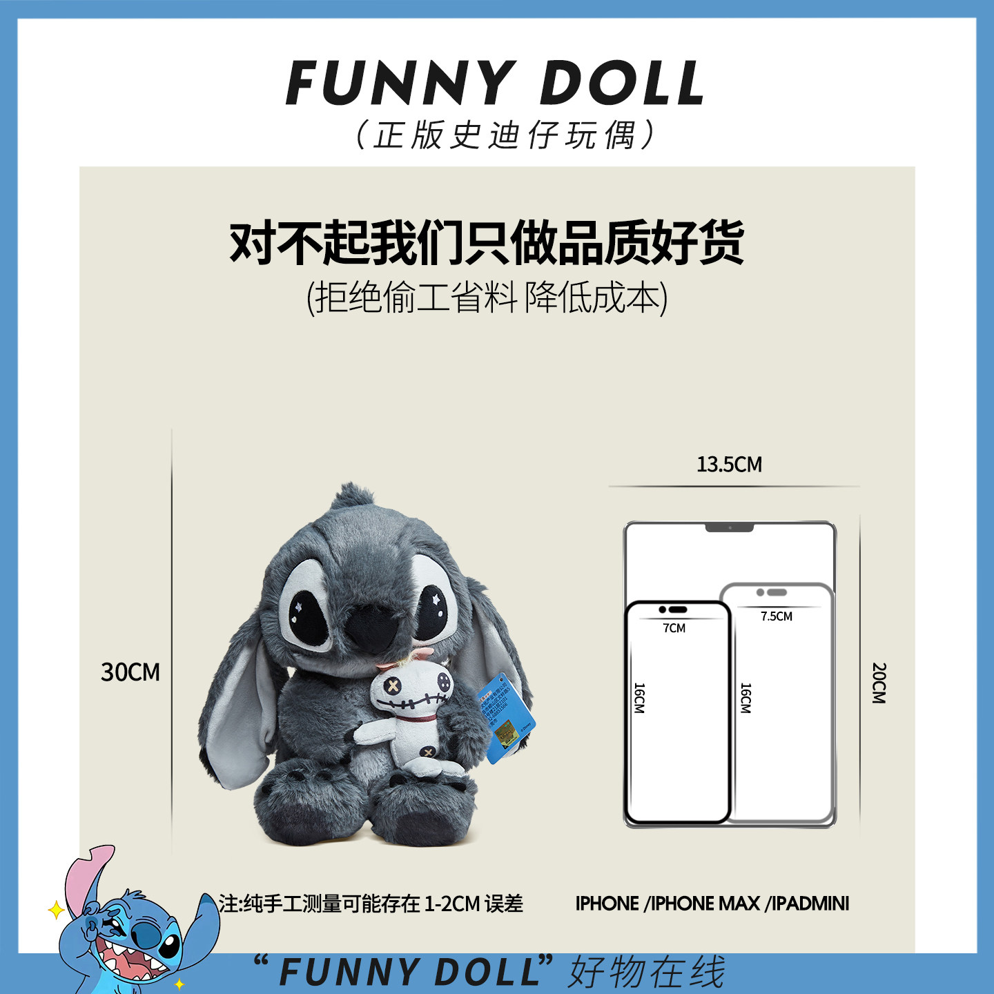 正版迪士尼老婆大人史迪仔毛绒公仔灰色黑皮玩具玩偶史迪奇礼物女