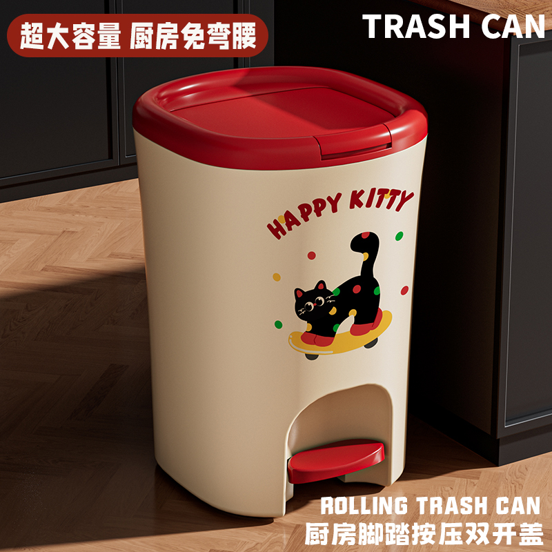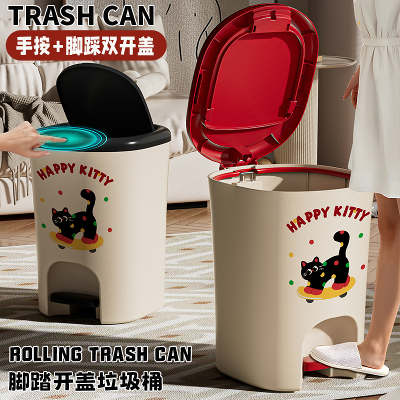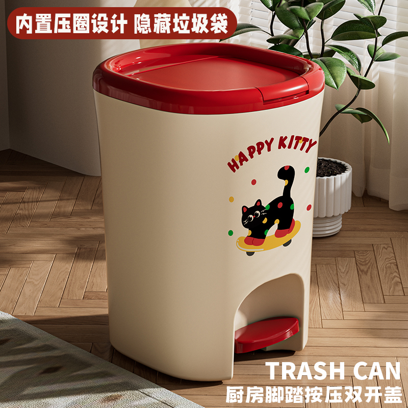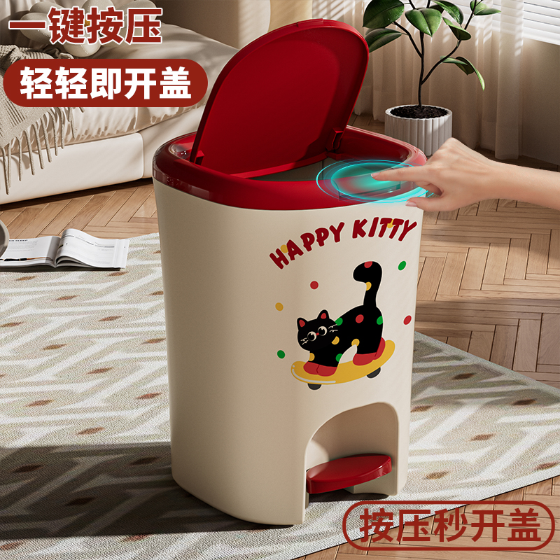 猫咪垃圾桶家用厨房客厅卫生间带盖大容量脚踏式卧室轻奢卡通纸篓