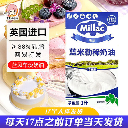 进口蓝风车淡奶油家用烘焙蓝米吉动物奶油裱花蛋糕材料1L烘焙原料