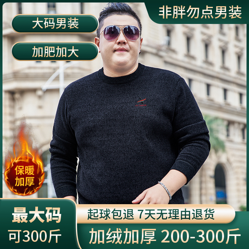 300斤加肥加大码保暖毛衣男胖子圆领冬季绣花加绒加厚打底针织衫