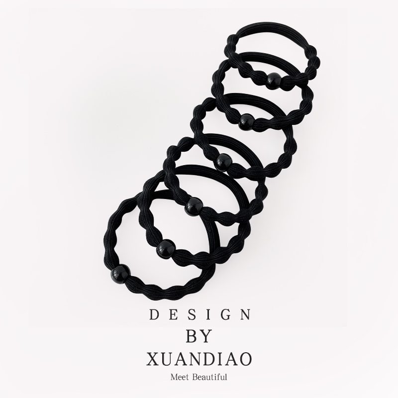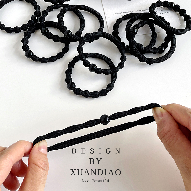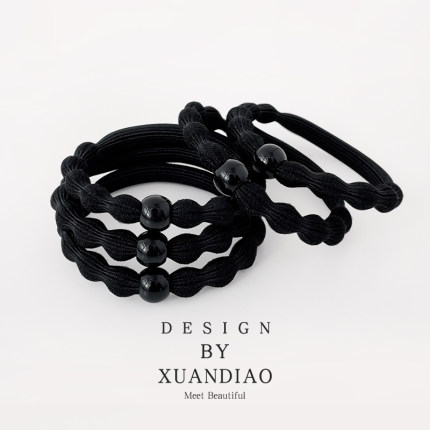 简约黑色豌豆发圈女扎头发橡皮筋高弹力耐用头绳加粗发绳头饰皮套